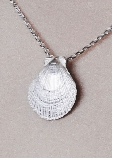 Anhenget består av en avstøpning av et ekte skjell i 925 sølv, ankerkjede 42 cm.