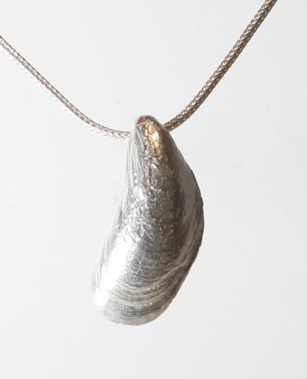 Blåskjell anheng (mellom størrelse – ca 3 cm langt) 925 sølv med 42 cm kjede.